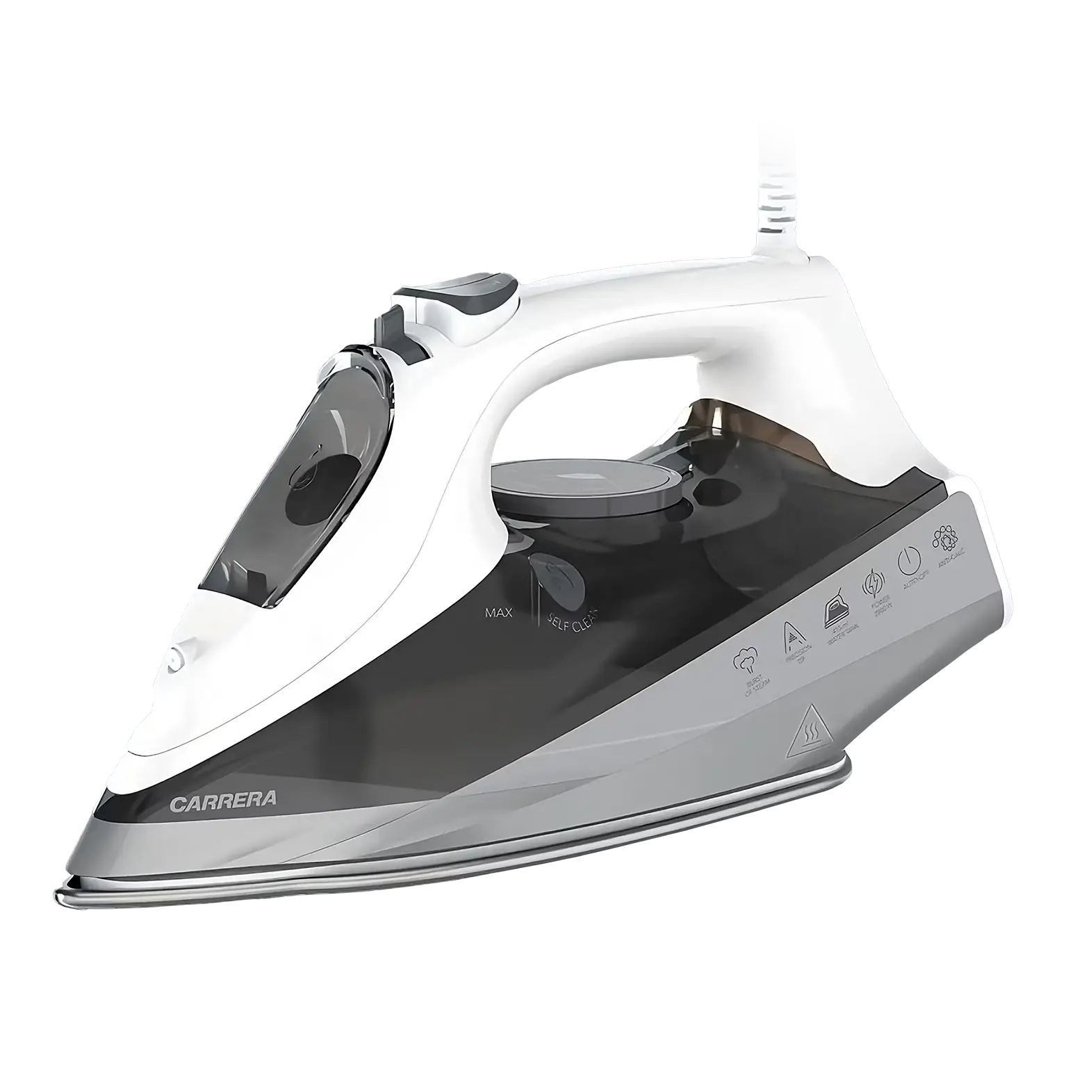 Функции: автоматическая регулировка силы пара, автоматическая регулировка температуры, вертикальное отпаривание, противокапельная система